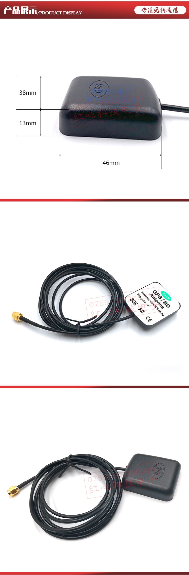 | 天線尺寸(Overal dimensions) | 46*38*13 | mm |
